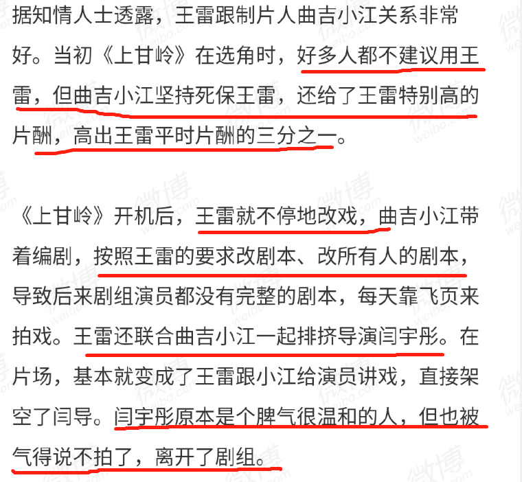 据爆料称,王雷能演这部剧,也是因为上面有人,他和女制片人曲吉小江私交不错。