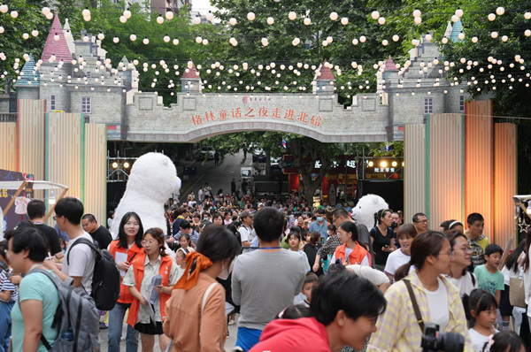 5月13日,第七季重庆图书馆大型原创亲子阅读推广活动——“格林童话之夜”走进北碚,上千亲子家庭参与活动。通过打造格林夜市、童话集市、水晶舞台、篱笆王国、梦想花园等十大经典主题会场,全景式还原童话故事情节和人物,让读者们在书籍、音乐、儿童剧、沙龙等多重形式中共享阅读盛宴。
