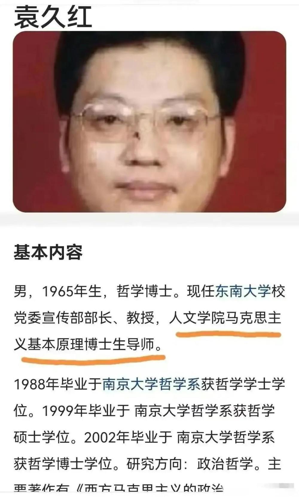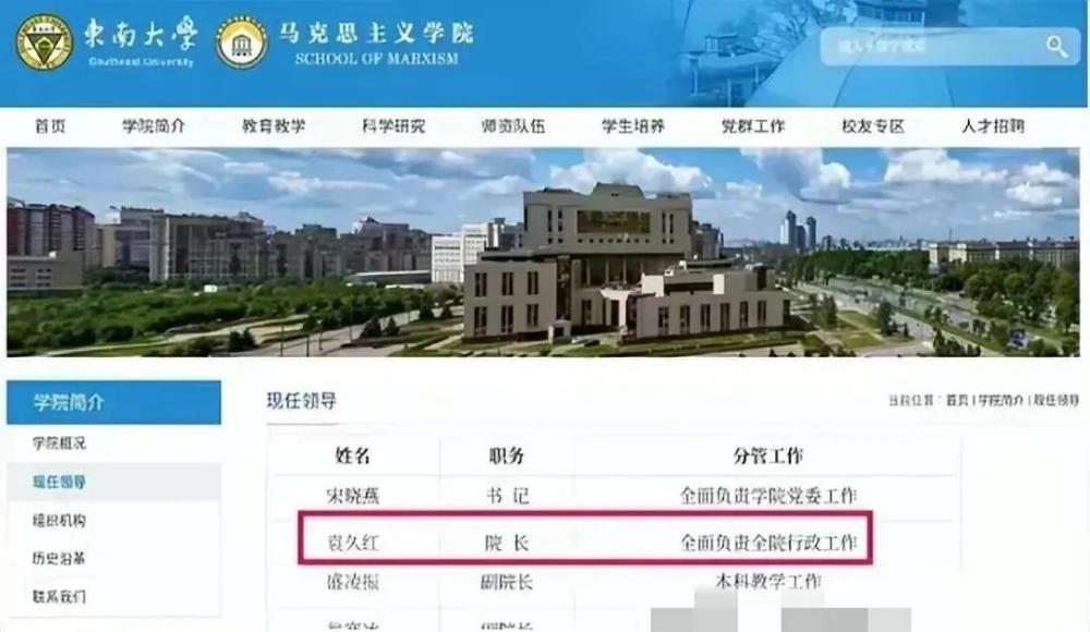 57岁的袁久红受聘于东南大学,也是马克思主义学院院长。