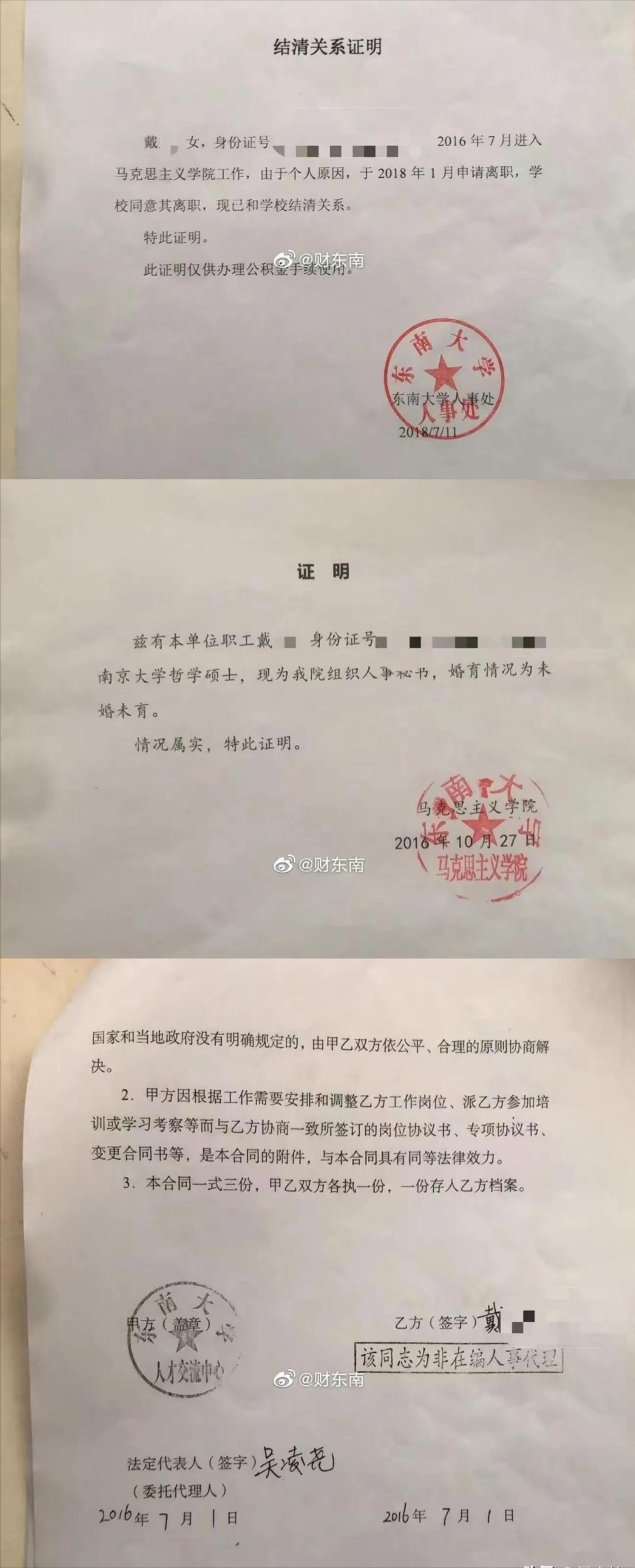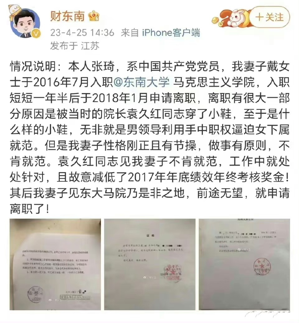 “财东南”的老婆,并不是因为被“潜规则”离职,而是在东南大学期间,因为不负责任,丢了重要文件,导致离职!