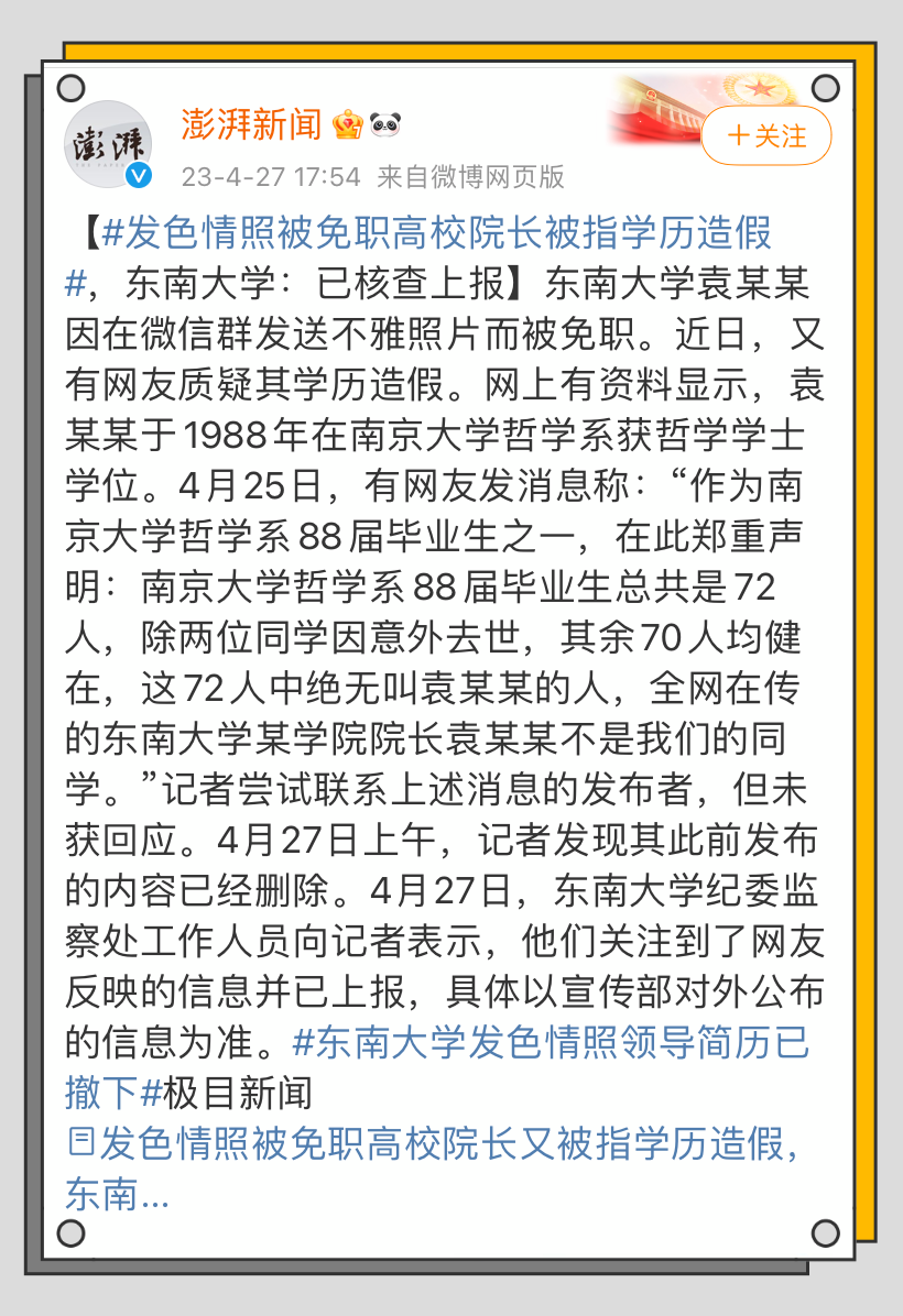 目前东南大学的纪委已经对于袁久红的学历,展开调查。