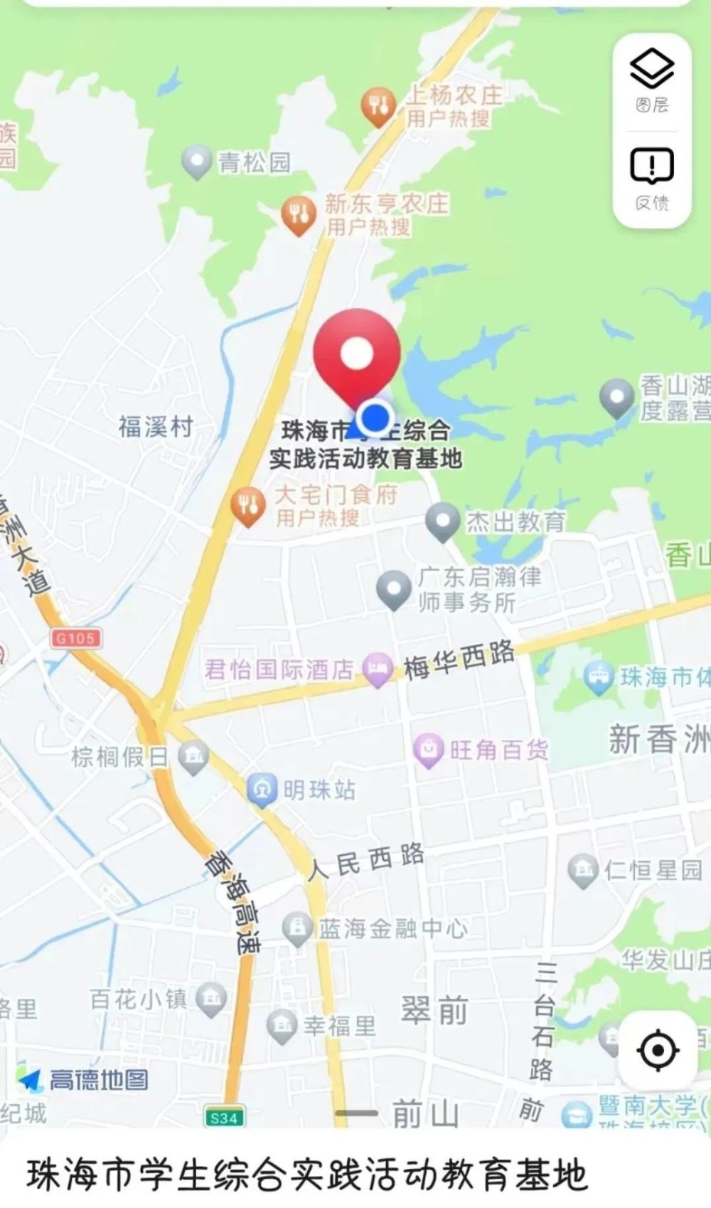 导航:珠海市学生综合实践活动教育基地(香洲区旅游路2428号)