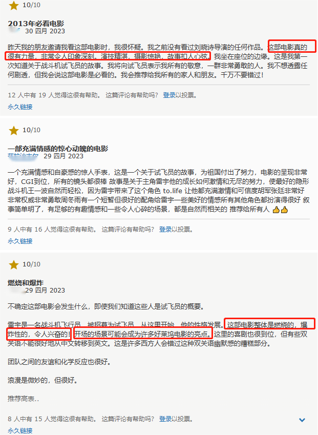 对比前面三个国家的媒体,美媒是通过平台给予《长空之王》的高度认可。