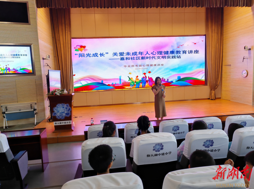 湖南日报?新湖南客户端5月22日讯(通讯员 邓青)为引导青少年正确对待成长阶段的心理变化,提高心理调适能力和抗挫折能力,近日,长沙市天心区先锋街道嘉和社区新时代文明实践站携手区仰天湖中建小学心理健康辅导站在小学报告厅开展了“玩转大脑 减压赋能”的心理辅导活动,帮助学生释放压力、缓解考前焦虑及不良反应,助力学生以平和的心态应对人生每一次考试。共有200余名在校应届小学毕业生参加本次讲座。