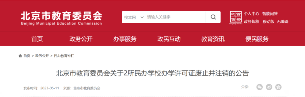 4.北京两所民办学校终止办学