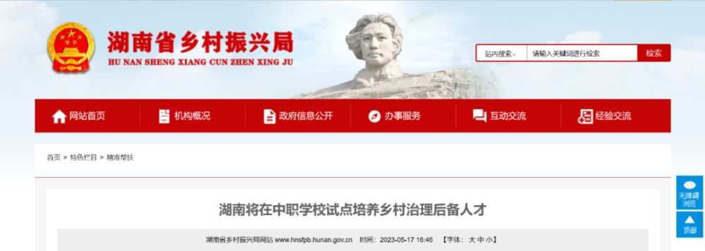 日前,湖南省教育厅印发《关于在全省职业学校开展培养乡村治理后备人才试点工作的通知》,决定在今年在职业学校试点开展乡村治理后备人才培养工作。