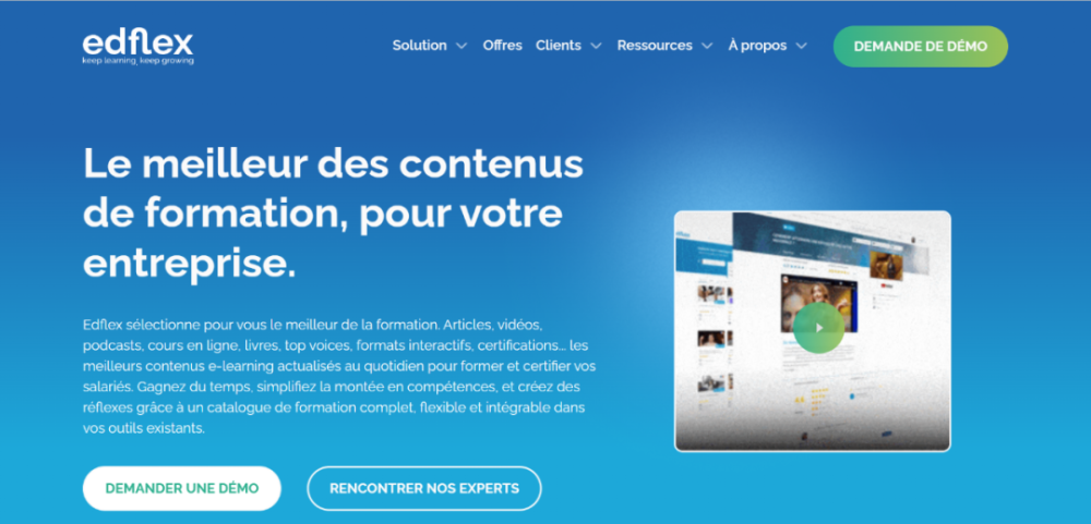 据了解,Edflex自2016年创立之始,便专注于企业学习领域。其提供的服务内容不局限于视频形式,还涵盖文章、视频、播客、在线课程、书本等多种形式,涉及商业和企业、工作组织、语言和文化、人员和管理、技术和工具、个人发展多个领域。