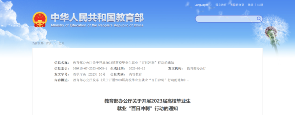 近日,教育部发布《关于开展2023届高校毕业生就业“百日冲刺”行动的通知》,提出于今年5月至8月开展2023届高校毕业生就业“百日冲刺”行动。