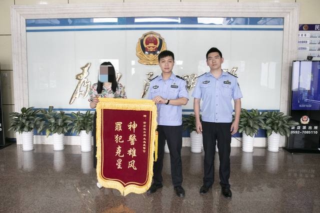 写有“神警雄风、罪犯克星”的锦旗
