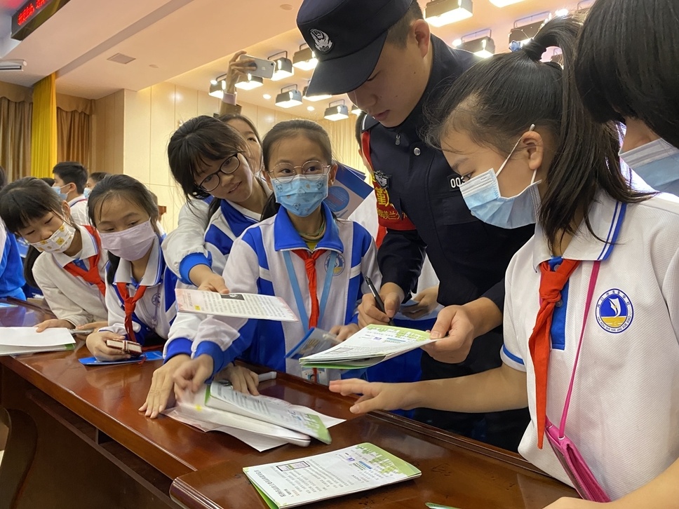 “暖心姐姐”义警队成立后,将宣传宣讲与“护苗”专项行动有机结合,统筹开展法治副校长“送法进校园”活动,深入辖区各个校园开展防诈骗、防盗抢、防欺凌、防溺水、远离黄赌毒等主题宣传,还用趣味问答的方式与儿童进行互动,增强宣传的效果。截至目前,“暖心姐姐”义警队已开展各类宣讲3场,受益师生800余人。