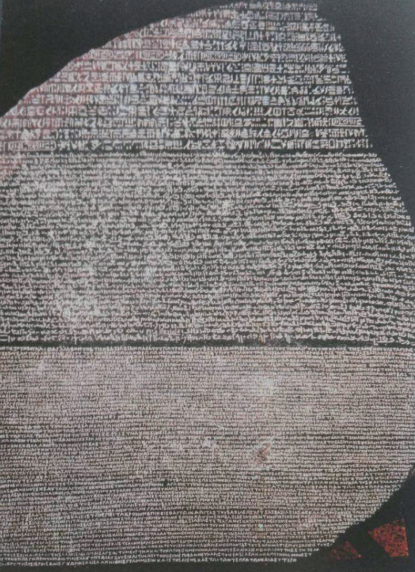 碑上刻有用古埃及象形文字、埃及草书和古希腊文三种文字书写的时任埃及国王托勒密五世的诏书。
