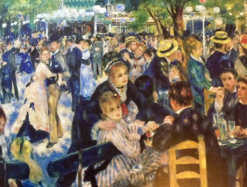 画面中洋溢着舞会的欢乐气氛。具有印象派的某些特色,强烈的闪烁效果和颤动的光线感觉,给人以强烈的刺激和印象。