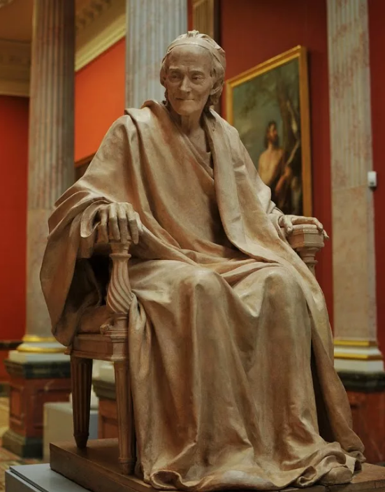该雕塑对法国思想家伏尔泰的性格特征进行了深刻、细腻的表现,真实地记录了这位八十岁高龄的哲学家的生前形象。