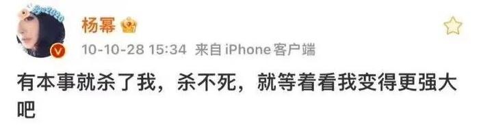 “有本事就杀了我,杀不死,就等着看我变得更强大吧”,这句互联网名言,让杨幂成为当时极少数语出惊人的女明星。