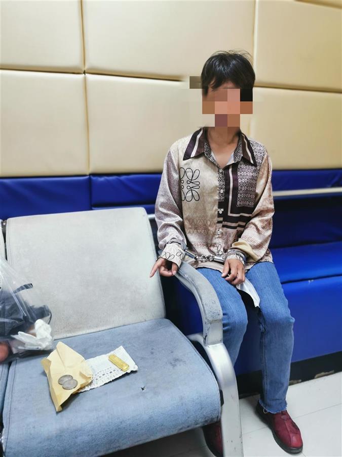 接到两起报案后,金山店派出所民警立即开展侦查工作。在相关部门的协助下,民警很快锁定了嫌疑人是唐某某。经查,唐某某49岁,湖南人。经过警方调查,5月15日上午7时许,警方在大冶大道发现唐某某的踪迹。在东岳路派出所的协助下,唐某某在大冶大道被民警成功抓获,并发现其随身携带的一根假金条和两枚假银元。