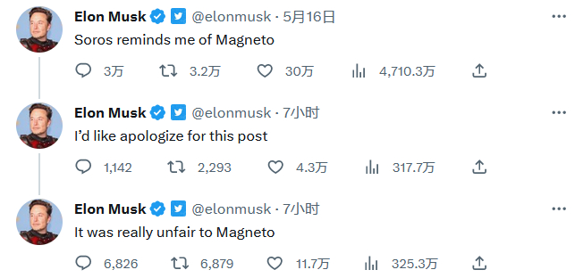 16日,马斯克在推特上突然发了一条推文攻击92岁的美国金融大鳄乔治·索罗斯,“索罗斯让我想起了万磁王。”万磁王是漫威作品《X战警》中最强大的反派角色之一,致力于消灭人类,让变种人取而代之,马斯克没有解释将两者作联想的原因。