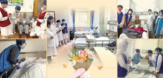 毛逸艳说,该中心在2017年引入专职社工,杨晓倩每周二和周四都会到病房里陪伴老人聊天、按摩;每周五下午还会开展志愿服务活动,有上海的大学生志愿者来陪老人聊天。