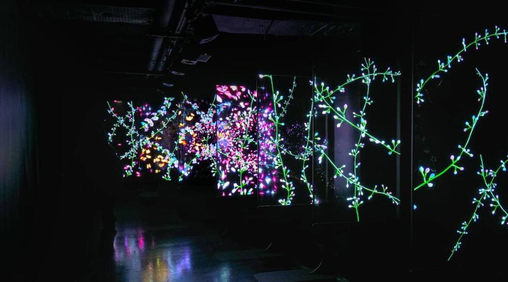 透明OLED屏幕在ARTECHOUSE 的PIXELBLOOM展上作为画布