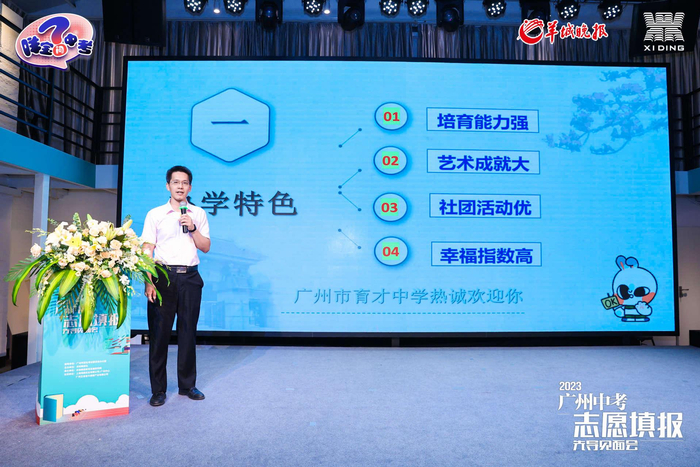 广州市育才中学教导处及招生办主任钟伟林 广州市育才中学(以下简称“育才”)前身是1951年创办的“广东省育才学校”,具有悠久的历史和文化底蕴。2013年成立广州市基础教育首个教育集团——“广州育才教育集团”。2014年通过广东省义务教育标准化学校评估。2015年通过广州市义务教育阶段特色学校评估。2017年被评为广东省美术特色教育学校,2020年成功申报广东省绿色学校。