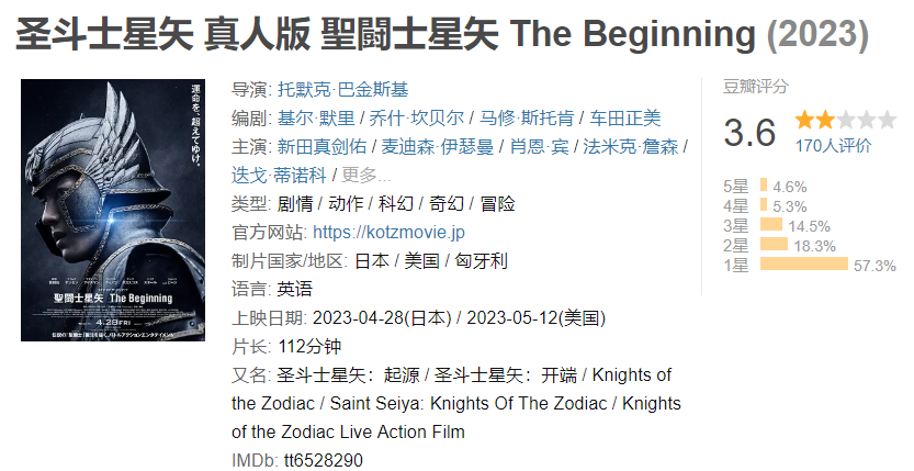 根据日本漫画所改编的真人电影《圣斗士星矢真人版》,早已于4月28日在日本上映,票房直接惨败。