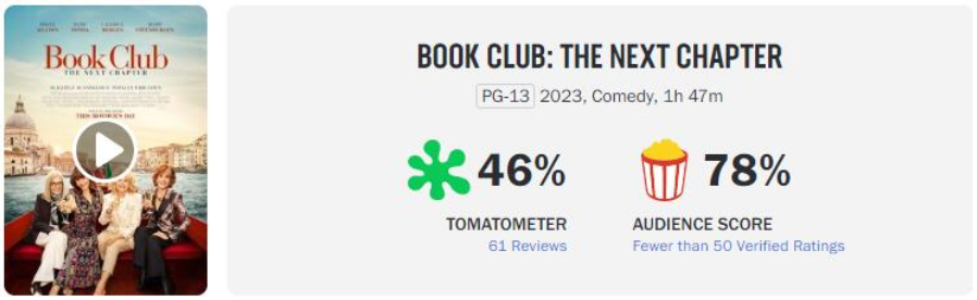 再就是简方达领衔主演的《读书会2:下一章》,烂番茄新鲜度只有46%,爆米花指数只有78%。