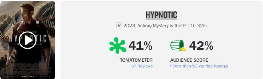 还有由罗伯特罗德里格兹执导,好莱坞巨星本阿弗莱克领衔主演的一部悬疑惊悚片《催眠》,海外的口碑同样非常差。