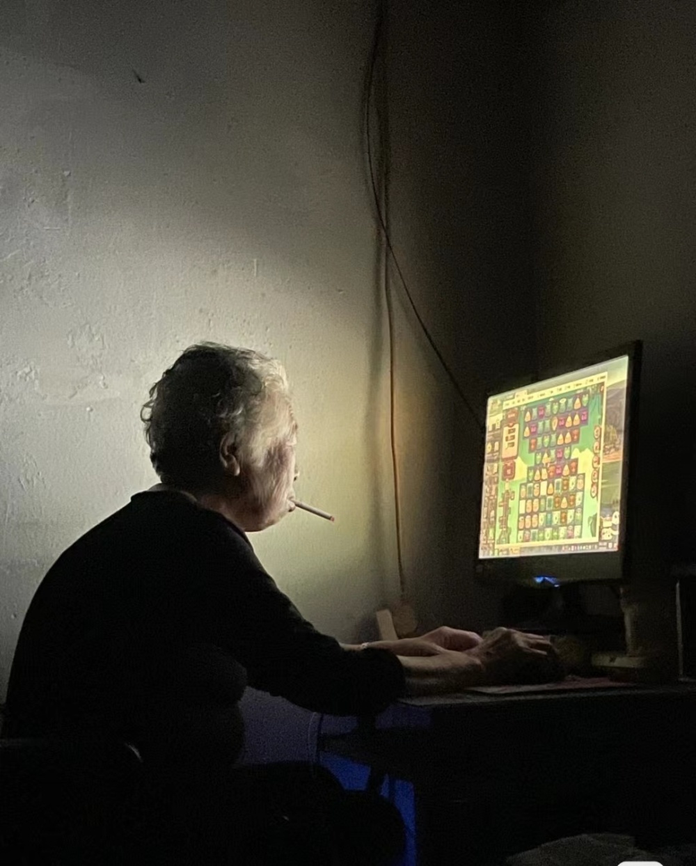 因为一张关了灯摸黑玩电脑的照片,她在网上小有名气。年轻人们羡慕地评价,希望自己老了也能这样。