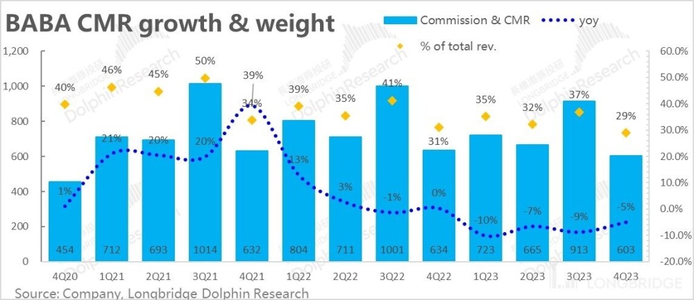 a. 一季度淘宝天猫收入(CMR,含佣金与广告)同比收缩 5%,仍然比市场预期差一些。