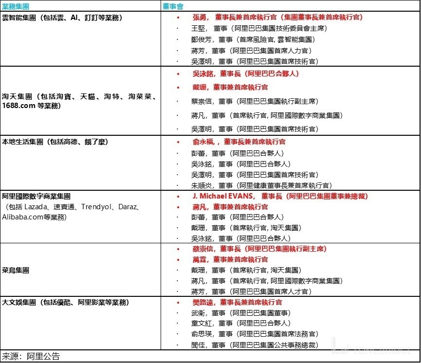 1. 明确出了淘宝天猫 100% 集团全资,其他业务集团都会寻求外部融资;