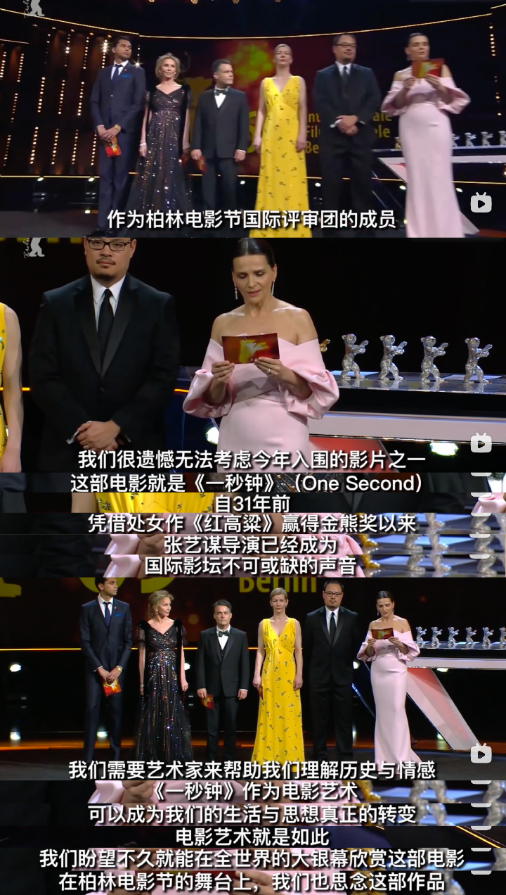 “因‘技术原因’,张艺谋新片《一秒钟》将退出柏林电影节,并推迟上映时间。”