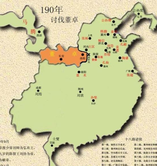 注意讨伐董卓时,袁术是在地图中心的南阳