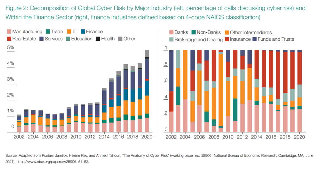 波士顿咨询公司2020年的一份报告发现,金融公司遭受网络攻击的可能性是其他商业公司的300倍。同样,IBM安全公司在过去五年中有四年将金融部门确定为受攻击最多的行业,占2021年所有网络攻击的22%。