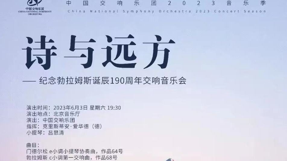 (北京音乐厅)这场音乐会上,德国指挥家克里斯蒂安·爱德华执棒中国交响乐团,与著名小提琴家吕思清演绎门德尔松《e小调小提琴协奏曲》。乐团还将演绎勃拉姆斯《c小调第一交响曲》,向这位作曲巨匠的190周年诞辰致敬。#不容错过#