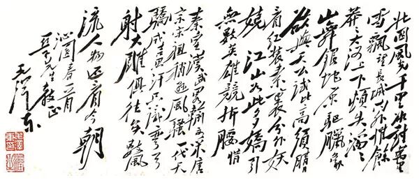【惜秦皇汉武,略输文采;唐宗宋祖,稍逊风骚。一代天骄,成吉思汗,只识弯弓射大雕。俱往矣,数风流人物,还看今朝。】