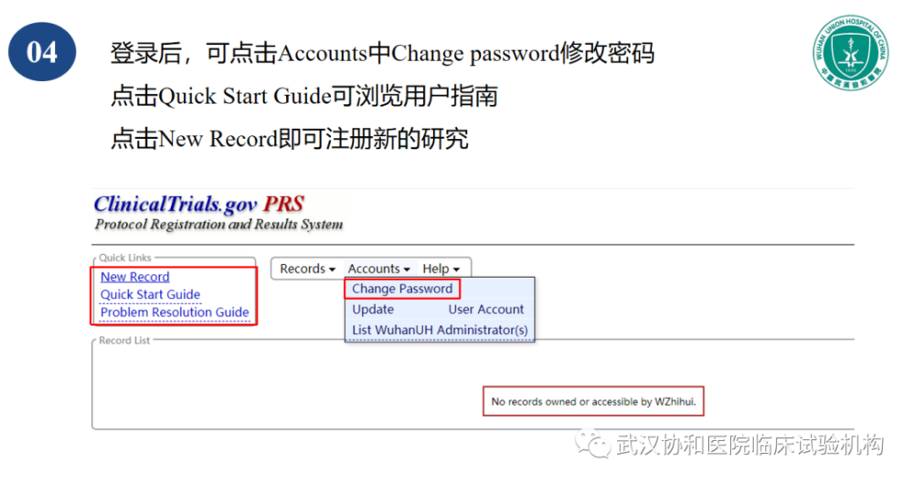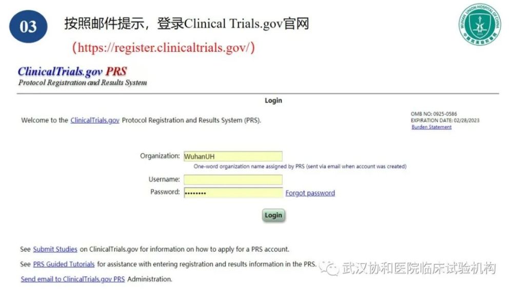 3)请牢记邮件中的登录名和密码并以此登录Clinical Trials.gov 系统官网及时修改密码,网址为https://register.clinicaltrials.gov/。