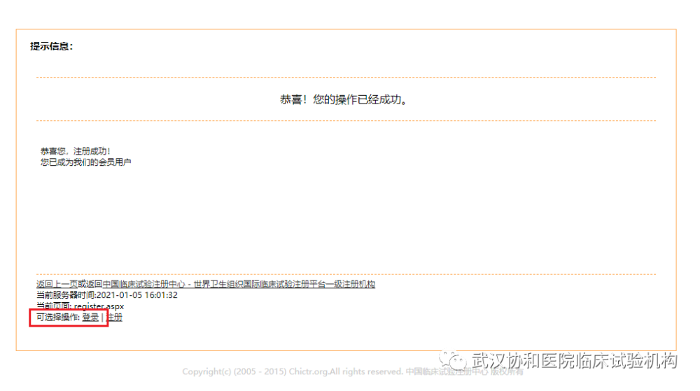 3)提示信息-注册成功后可直接点击“登录”。