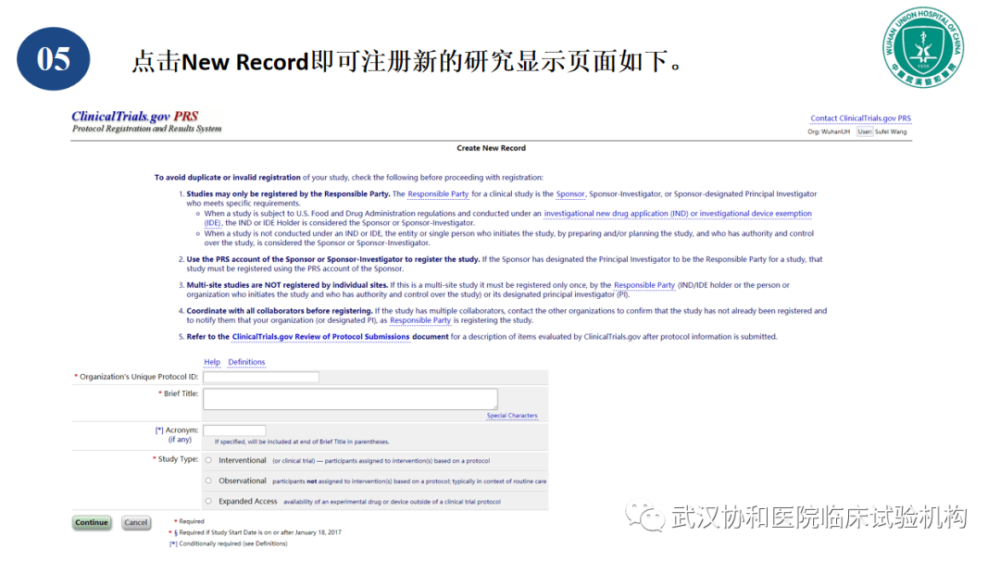 5)点击New Record建立新的研究后,按要求如实填写信息即可。