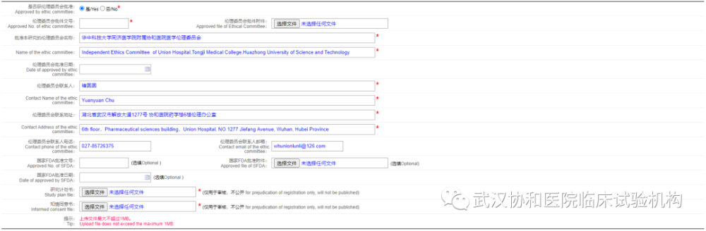 6)按要求提交相应资料信息即可,本院伦理信息如下图所示。