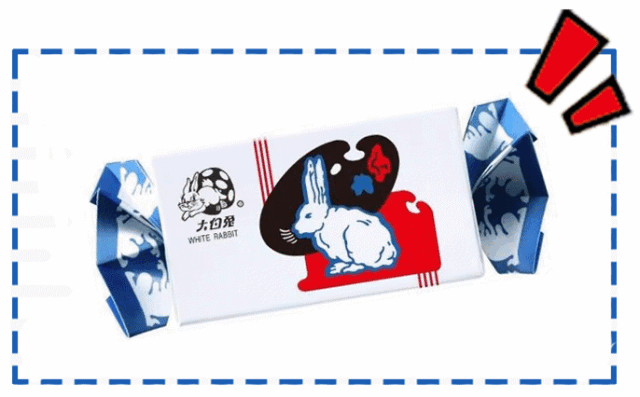 红蓝白的设计,和记忆中的大白兔奶糖一模一样,连打开的方式都模拟了奶糖!