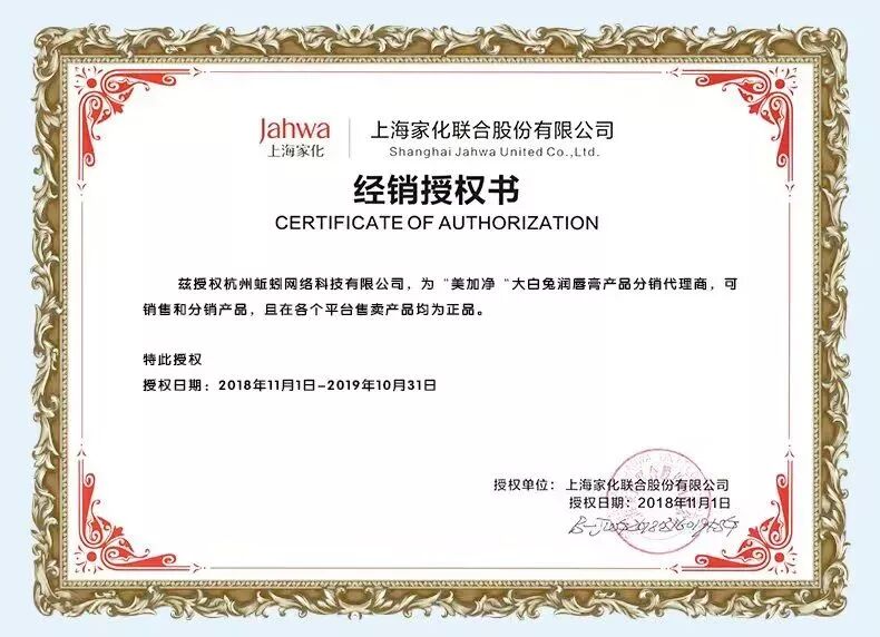 小仙女们不用担心正品问题,在我们这购买的大白兔奶糖润唇膏都是拿到了上海家化的经销授权书滴!