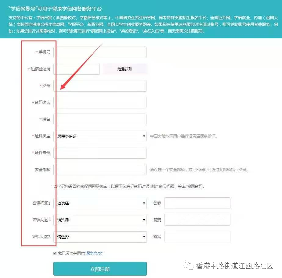 填写框内带*的全部内容,点击“立即注册”。