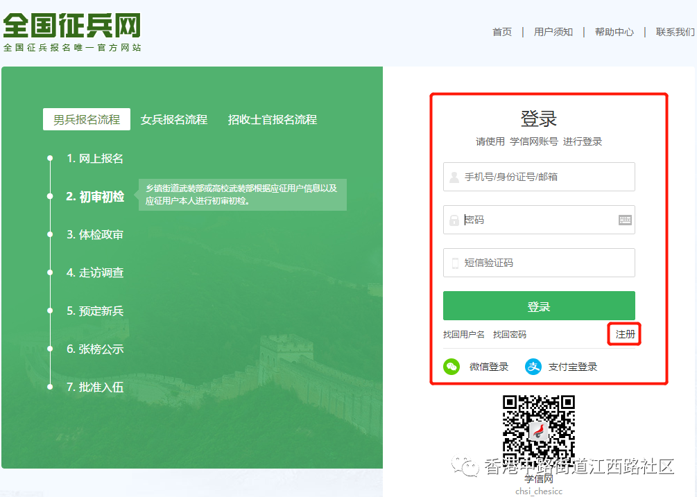 来源:海大武装部(1)网上注册信息。登录“全国征兵网”点击“兵役登记”选项,进行实名注册并真实、完整填写个人基本信息。