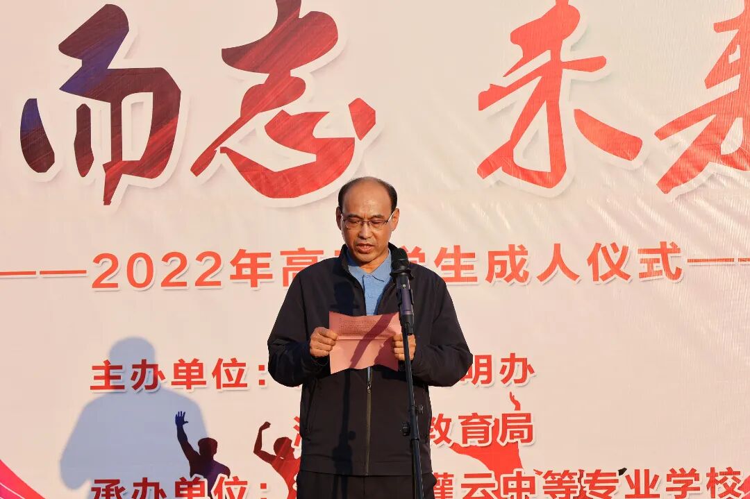 火红的青春点燃梦想,激情的岁月放飞希望!10月24日下午,灌云中专2022年“十八而志 未来可期”十八岁成人仪式隆重举行。校领导庞占银、各系部主任、高三年级班主任和学生参加仪式,会议由团委副书记许青云主持。