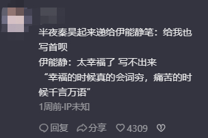 正如网友打趣:伊能静现在写不出《春泥》了,因为幸福的时候会词穷,痛苦的时候千言万语。