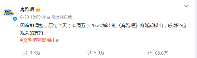 综艺节目《奔跑吧》延期播出