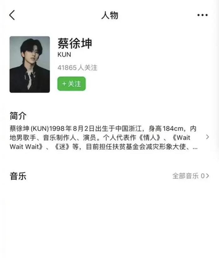 蔡徐坤音乐作品下架、参演节目被除名