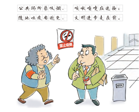 不在公共场所吸烟、吐痰,咳嗽、打喷嚏时遮掩口鼻。