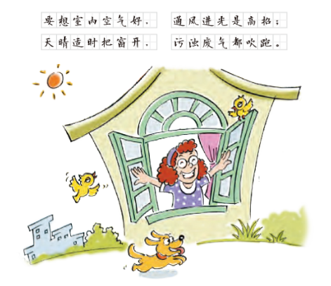阳光和新鲜的空气是维护健康不可缺少的。阳光中的紫外线,能杀死多种致病微生物。让阳光经常照进屋内,可以保持室内干燥,减少细菌、霉菌繁殖的机会。开窗通风,可以保持室内空气流通,减少室内有害气体或病菌,预防呼吸道传染病发生。