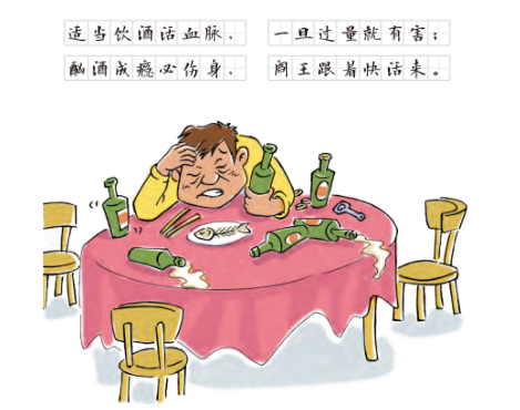 酒的主要成分是乙醇和水,几乎不含有营养成分。经常过量饮酒,会使食欲下降,食物摄人量减少,从而导致多种营养素缺乏、急慢性酒精中毒、酒精性脂肪肝等,严重时还会造成酒精性肝硬化。过量饮酒还会增加患高血压、脑卒中(中风)等疾病的风险,并可导致交通事故及暴力事件的增加,危害个人健康和社会安全。少饮酒,不酣酒。