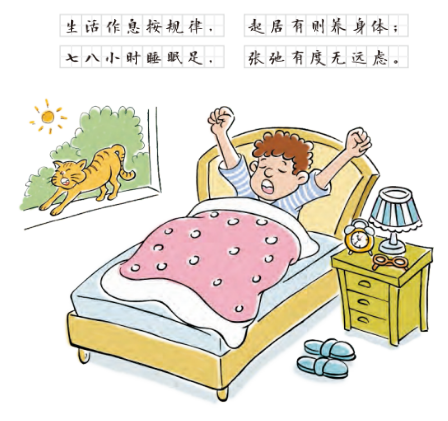 任何生命活动都有其内在节律性。生活规律对健康十分重要,工作、学习、娱乐、休息、睡眠都要按作息规律进行。要注意劳逸结合,培养有益于健康的生活情趣和爱好。顺应四时,起居有常。睡眠时间存在个体差异,成人一般每天需要7-8小时睡眠,儿童青少年需要更多睡眠,长期睡眠时间不足有害健康。